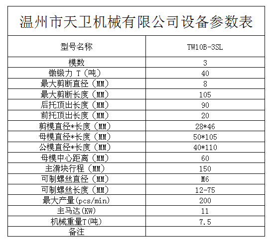 您當前的位置:首頁 / 產(chǎn)品中心 / 三模三沖冷鐓機 / └ TW10B(M6)全自動多工位冷鐓機 / TW10B-3SL全自動多工位冷鐓機